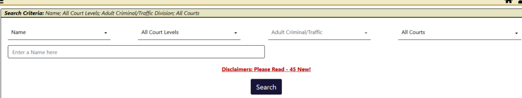The system provides options to search different courts. Selecting the correct court helps narrow your search to the right records. Choose the appropriate court category depending on the type of case: