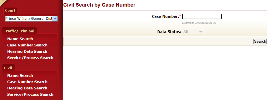 Cases from the Prince William County General District Court can be searched online through the Virginia Judicial System website. Users can look up Traffic/Criminal or Civil cases by entering a case number, party name, or hearing date. Prince William County General District Court provides an official online system where the public can check public court records and perform a quick legal records search. The District Court Prince William County VA database divides records into two main categories: Traffic/Criminal cases and Civil cases. Selecting the correct category helps users locate case filings, court hearings, and case status updates. Follow the steps below to search both case types.